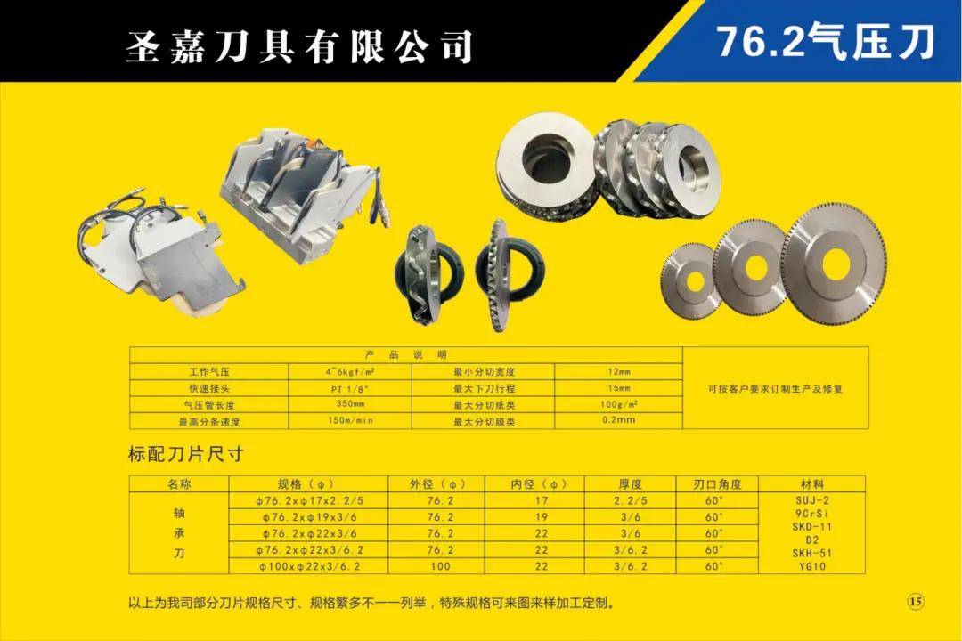 本公司所生產(chǎn)的各種型號規(guī)格分切、分條、分紙、復(fù)卷機(jī)圓刀片(蝶形上刀片、上刀架、下刀片、隔片、隔套、底棍、復(fù)卷刀、碗形刀、刀圈、大回旋圓切刀、砂輪、壓花輪、折疊刀、齒刀、異形刀)橫切刀、裁切刀、熱切刀、粉碎刀、切粒刀、撕碎刀、折頁刀、開槽刀、油墨刮刀、切臺圓刀、三孔刀、切管刀、氣壓刀組、剪切刀組、熱切刀組廣泛適用于造紙、紙制品加工、膠粘帶制品、薄膜、電線電纜、橡膠、輪胎、鋁箔、化纖、非織造布、復(fù)合包裝、卷煙、皮革、印刷、服飾輔料等行業(yè)。